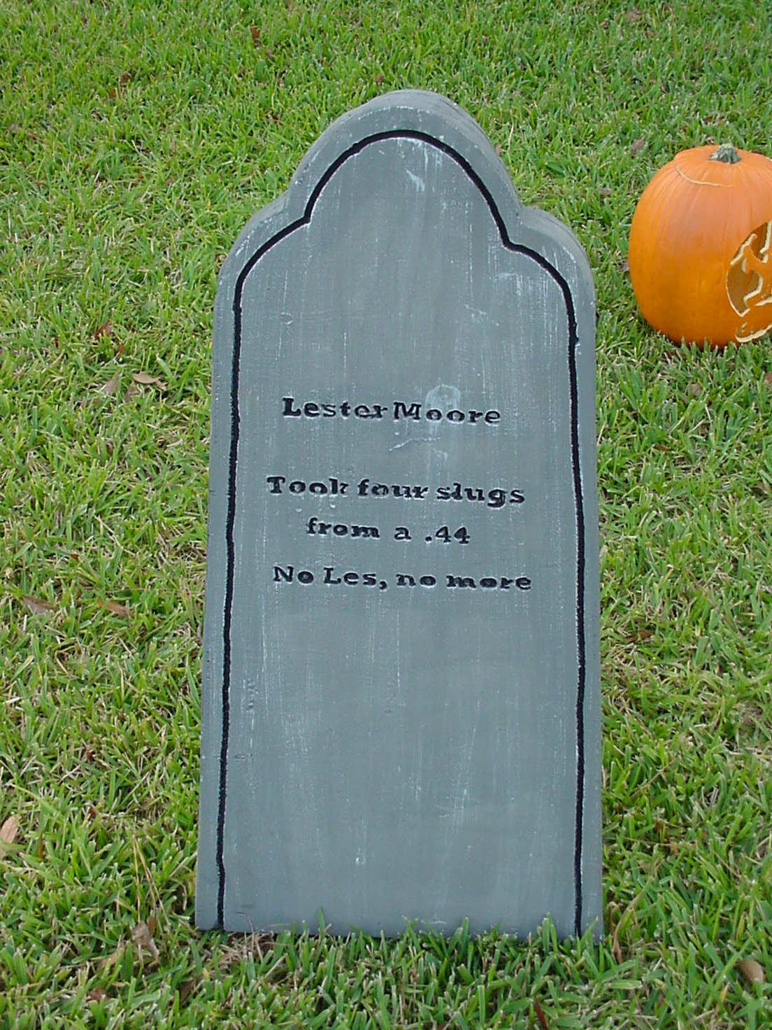 you get the basic shape of the tombstone cut you can use a dremel tool or wood burner to etch out the epitaphs.