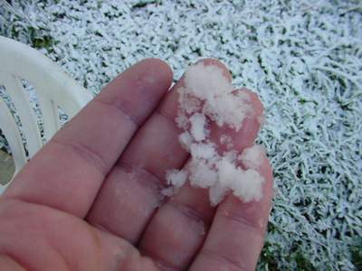 I woke up this morning feeling a bit under the weather, runny nose and cough you know the usual crud... anyway that was 4am... I got up and sat on the couch to let everything drain out of my head, well I fell asleep. Soon Angie got up and went to work then I get a phone call... "honey I forgot to take out the trash." So, as I'm taking out the trash I realize hey it's damn cold out here. Well you northern folks would probably laugh at me but it was 28 on thermometer... so what do you do when it gets that cold? You make snow!