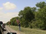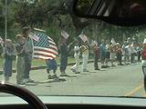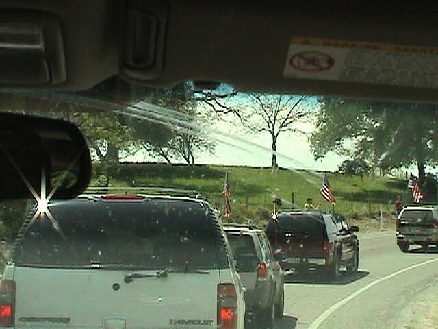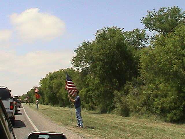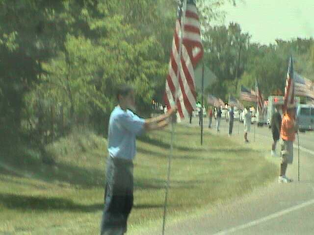the road who was not in the procession, pulled over, got out of their cars, and stood silently and respectfully, some put their hands over their hearts, some had small flags. Shop keepers came outside with their customers and did the same thing. Construction workers stopped their work, got off their equipment and put their hands over their hearts, too. There