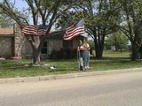 younger boys, all holding flags. Then adults. Then families. All standing silently on the side of the road. No one spoke, not even the very young children. The last few turns found people crowded together holding flags or with their hands on their hearts. Some were on horseback.